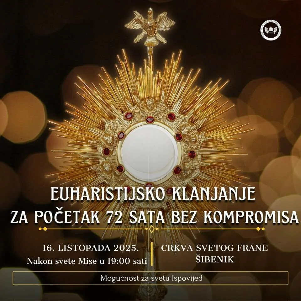 Ovoga mjeseca, naše redovito mjesečno euharistijsko klanjanje održat će se u crkvi sv. Frane u Šibeniku, u sklopu početka volonterske akcije „72 sata bez kompromisa“.