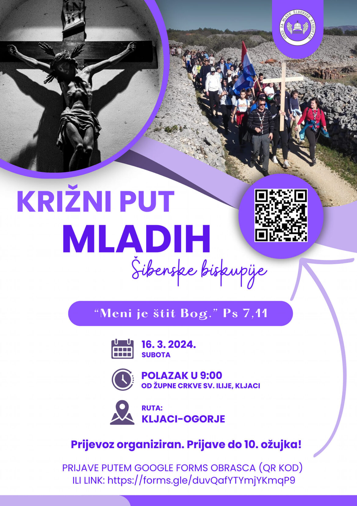 Dragi mladi, Ured za pastoral mladih Šibenske biskupije u GODINI MOLITVE organizira KRIŽNI PUT MLADIH.