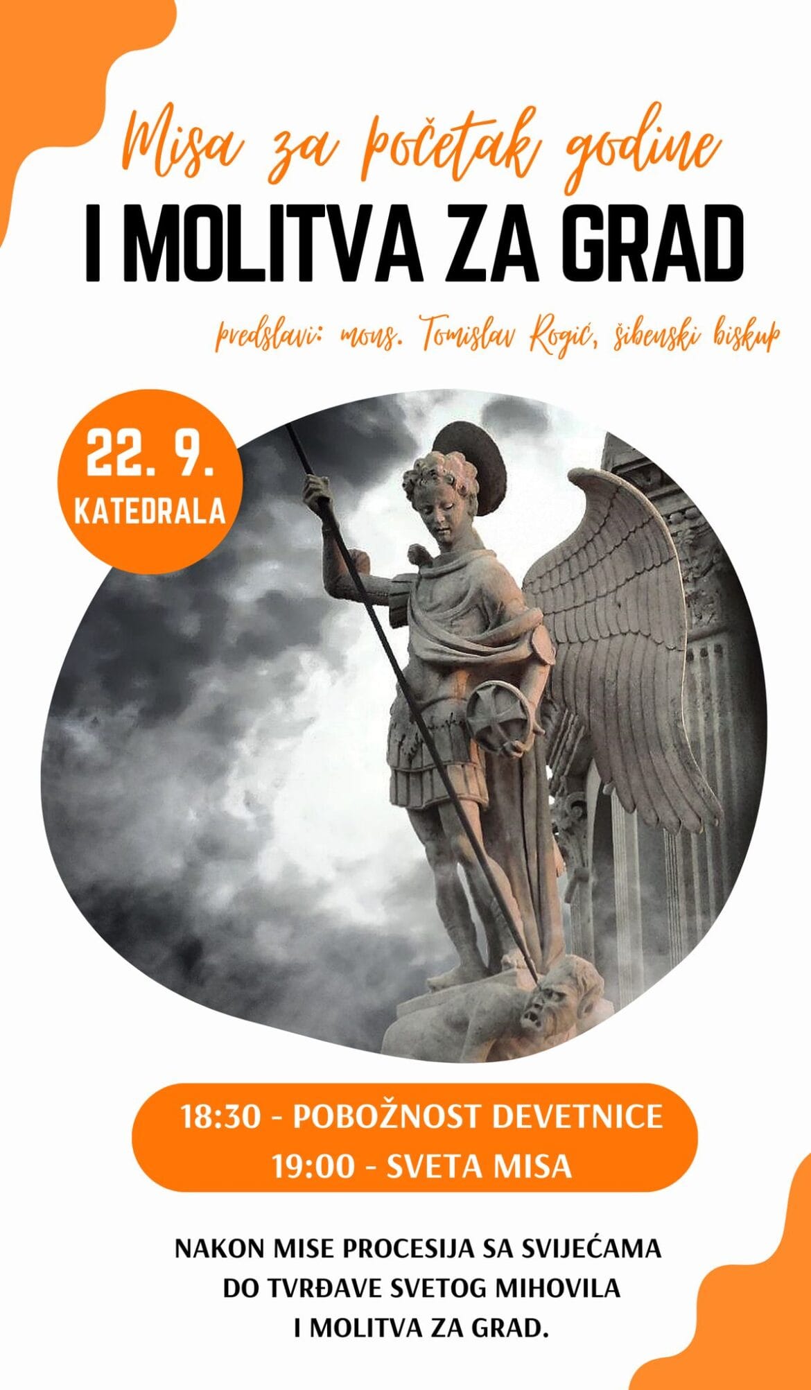 Svetom Misom u Katedrali i molitvom na tvrđavi sv. Mihovila započinjemo novu pastoralnu godinu. Misno slavlje predvodit će mons. Tomislav Rogić, šibenski biskup.
